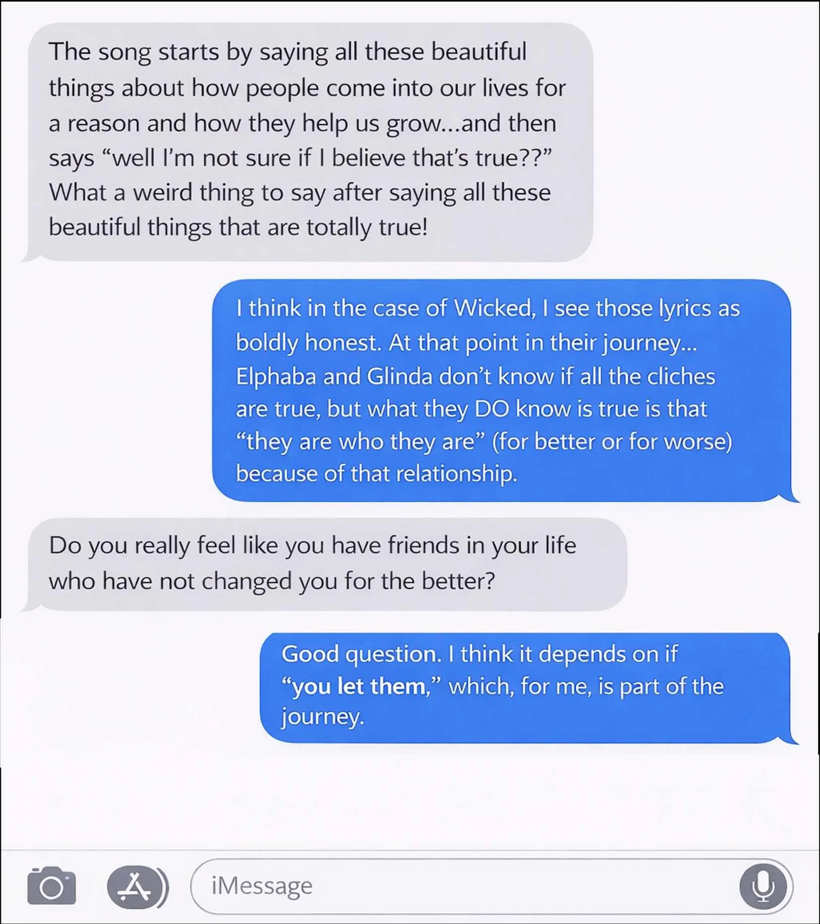 Just after the second installation of the Wicked movie series (Wicked: For Good) was released, I had a friend text me. After closely examining the lyrics to For Good, he was perplexed. Our text exchange went something like this: